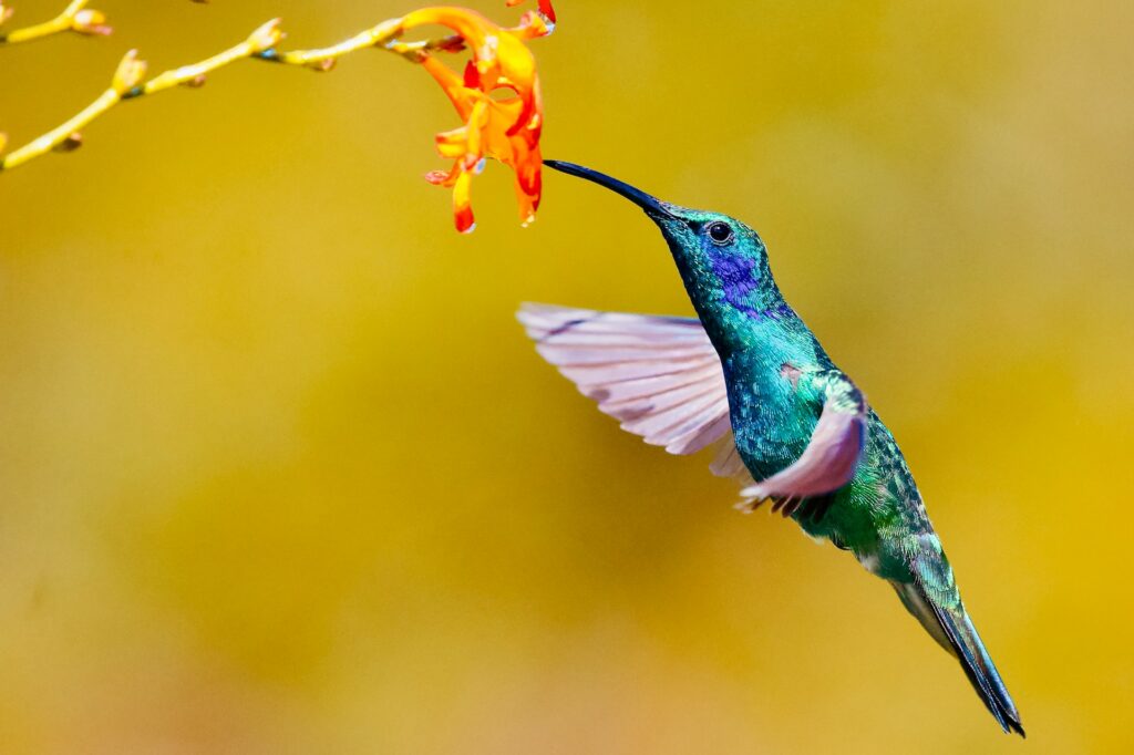 Doch das wahre Kennzeichen der Kolibris ist, scheinbar mühelos in der Luft zu verharren, um mit ihrem Schnabel aus aus einer Blüte zu trinken. Sie sind unfassbar flexibel, gewandt und können scheinbar mühelos zu agieren, so dass dieses in der Luft fliegend auf der Stelle verharren ihr außergewöhnliches Alleinstellungsmerkmal ist. Kolibris können sogar rückwärts fliegen. Ihre Fähigkeiten sind herausragend und der kleine Vogel setzt diese mit Leichtigkeit und Mühelosigkeit bei gleichzeitig maximaler Flexibilität um. Zudem faszinieren Kolibris aufgrund ihres unglaublich strahlenden, farbenfrohen Federkleides.